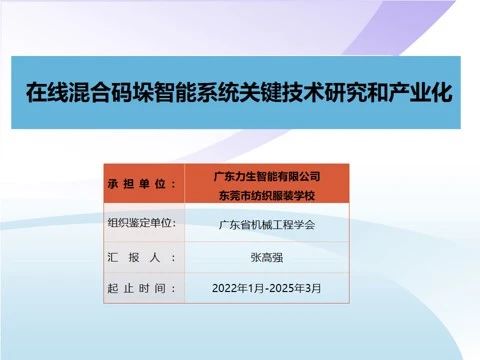 2025年4月13日,廣東省機械工程學會在東莞市組織并主持召開了由廣東力生智能有限公司和東莞市紡織服裝學校完成的“在線混合碼垛智能系統關鍵技術研究和產業化”科技成果鑒定會。